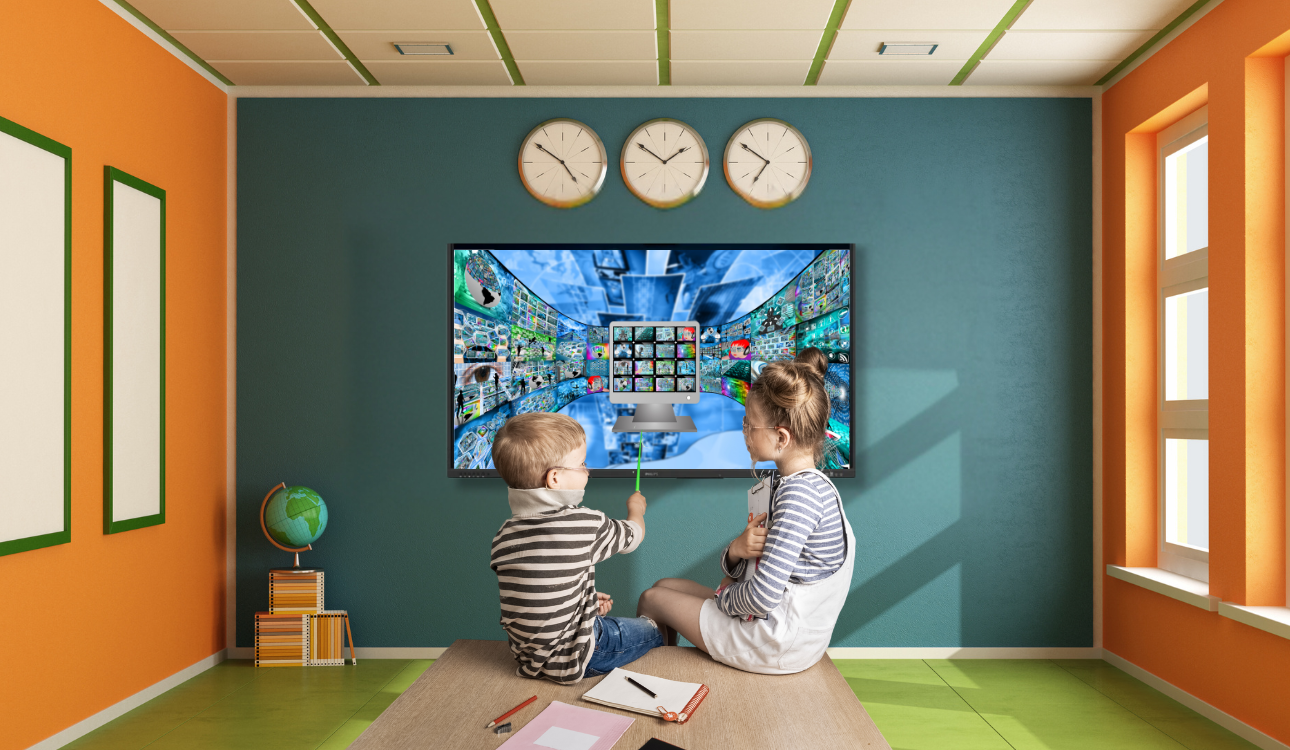 Con 40 puntos de contacto multitoque, cristal refozado y resolución 4K, las pantallas Phillips ScreenShare facilitan la transformación digital educativa tanto en el modelo presencial como remoto.